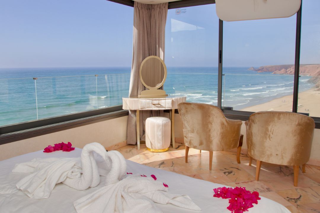 +212 687 878 264Le studio Aicha offre le summum du luxe et du confort, vous garantissant une expérience inégalée avec ses vues panoramiques époustouflantes sur l'océan Atlantique. Situé au-dessus de la plage de Mirleft, cet appartement dispose de :